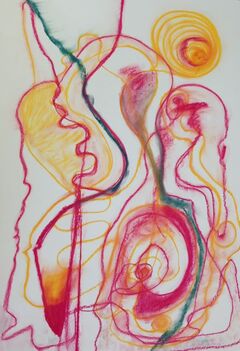 Der Fokus beim dialogischen Malen liegt in der non-verbalen Kommunikation zweier sich gegenübersitzender Menschen, die sich vom eigenen Standpunkt aus bewegen – mit oder ohne Bezug auf das Gegenüber.