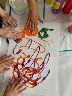 Beim Malen mit unseren Händen kommen wir über den direkten Kontakt zum Material ins eigene Gefühl. So lässt sich die geschmeidige Farbe in ihrer unterschiedlichen Temperatur spüren, wir können ihre Leuchtkraft genießen, sie im eigenen Duktus bewegen und formen.